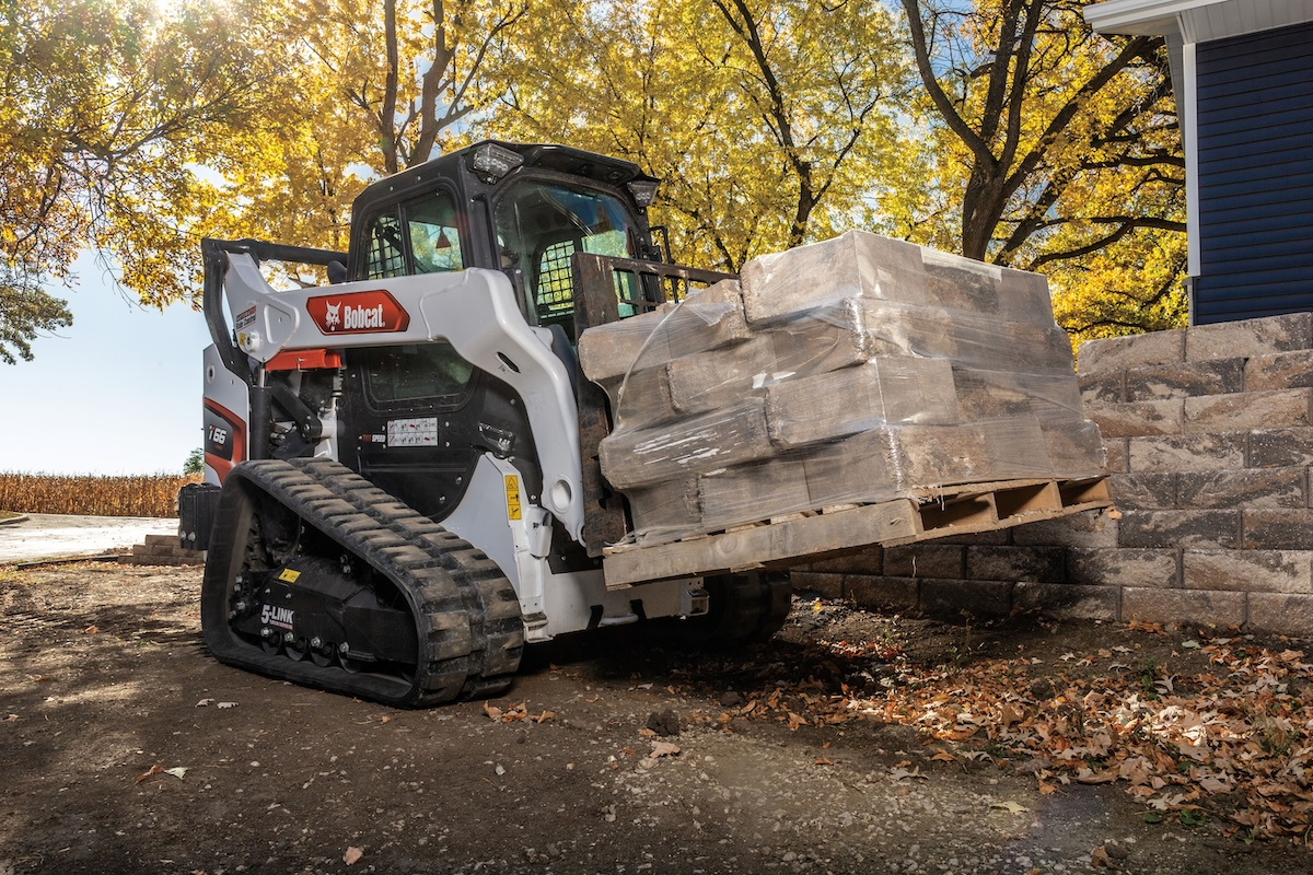 This go-to attachment can carry and unload pallets of blocks, pavers, concrete mix, and other bulky, bagged, or palletized materials across a job site.