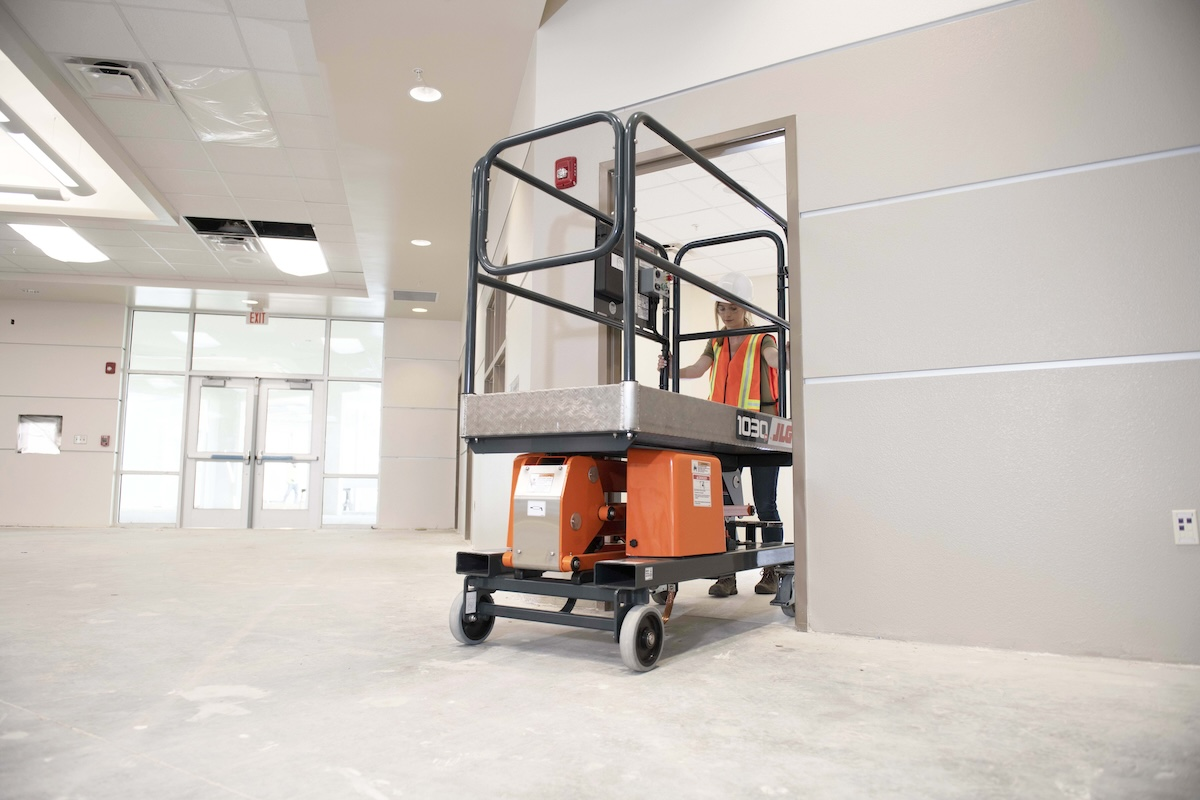 These lightweight machines meet demanding indoor applications with working heights up to 16 feet. Tool trays and tool tethering can put everything required to complete a task within arm’s reach. The lifts can be easily maneuvered without causing damage to walls and door frames, a concern commonly experienced with drivable machines.