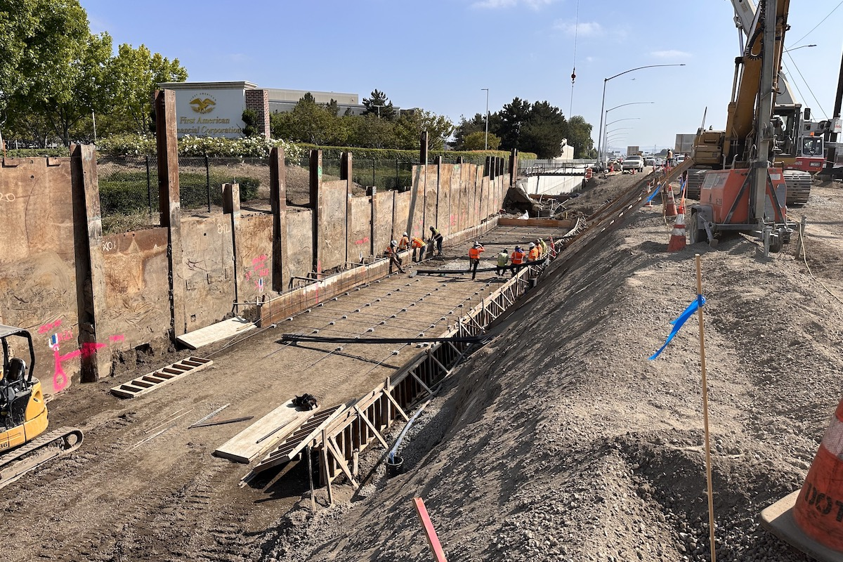 These include K-rail barriers, dynamic message signs, and California Highway Patrol enforcement to discourage speeding through the construction areas. K-rail barriers are the pre-cast concrete, steel-reinforced walls used to separate lanes of traffic and provide protection. They are called Jersey barriers in much of the U.S. The project requires 18 retaining walls. Six are under construction, and 12 are complete.