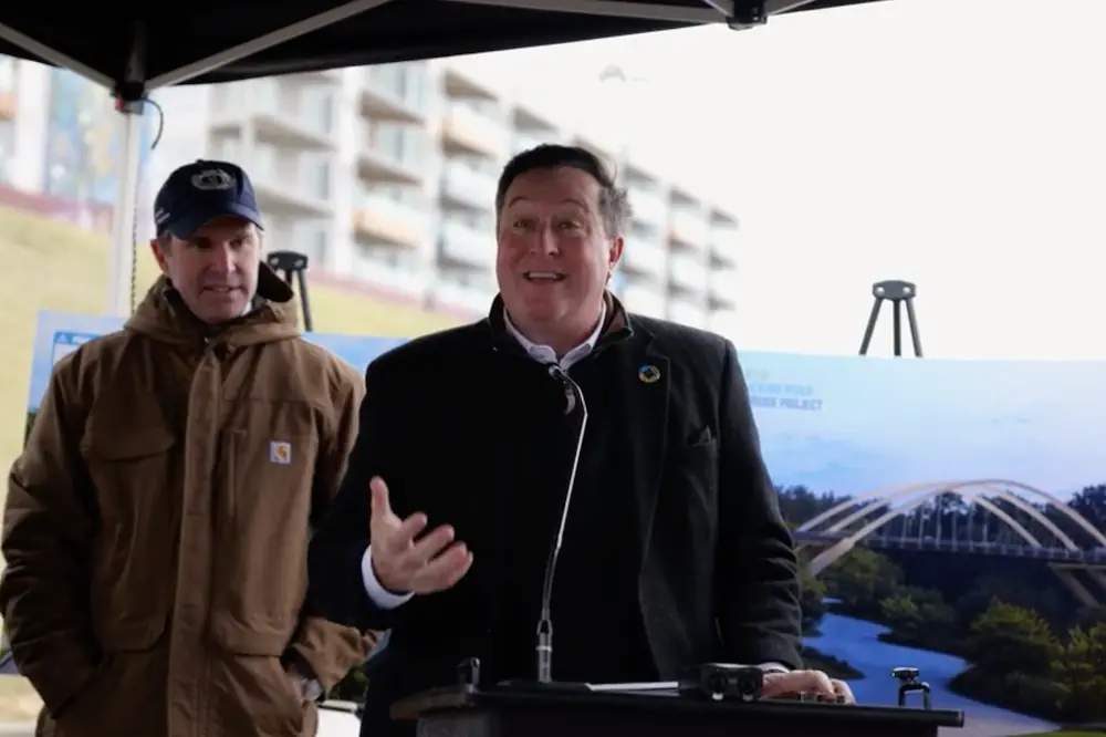 COVINGTON, KY — Governor Andy Beshear joined state and local officials for a controlled demolition of the existing KY 8 Licking River Bridge, marking a major project milestone toward construction of a modern, signature design bridge to connect Covington and Newport, Kentucky.
