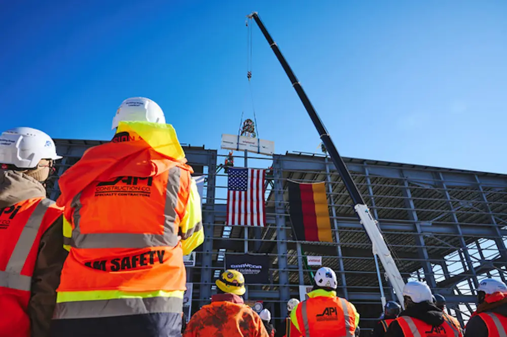 OAKBROOK TERRACE, IL — Wieland, a supplier of copper and copper alloy solutions, has reached a major milestone in the $500 million modernization and expansion of its facility in East Alton, Illinois. The topping off of the EA2030 structure marks the culmination of the first stage in this plan and represents an ongoing collaboration between Wieland, the lead construction and design firms, and local trade organizations and contractors amid live plant operations. Graycor Construction Company and Helmkamp Construction Co. are the design-build team for the multi-phase project, which began in June 2024, working alongside design partners Vestal Corporation and Salas O’Brien.