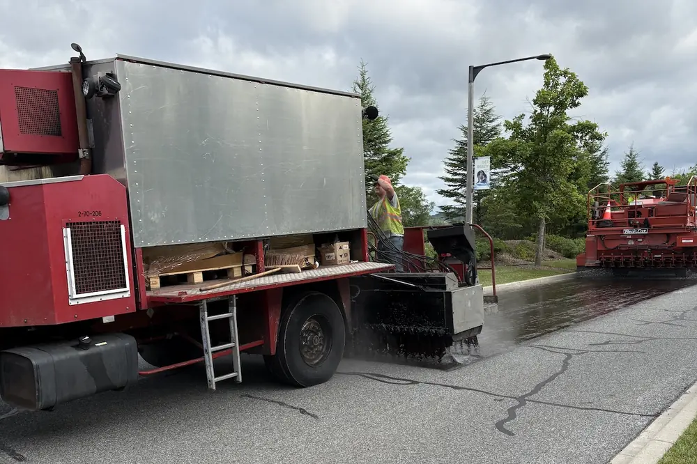 “If you use a vacuum sweeper and then come right behind that with the fog seal, it’s able to lock in any of the stone dust or loose aggregate to give a better aesthetic and rideability,” Mellon said.