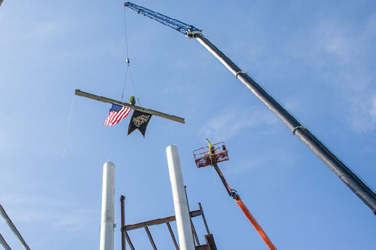 ORLANDO, FL — Construction workers recently placed a ceremonial steel beam on the University of Central Florida (UCF) Roth Tower addition to FBC Mortgage Stadium, marking the project’s official topping out to finalize structural assembly. From here, the team will work on enclosing the project and then fitting out the interior. Barton Malow is managing the project’s construction.