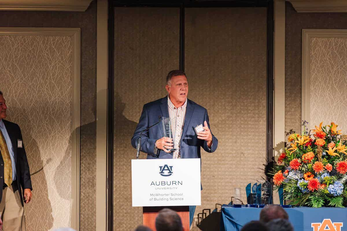 AUBURN, AL — JE Dunn Construction Vice President Pat Arrington has received the Lifetime Achievement Award from Auburn University’s McWhorter School of Building Science. This award honors his career and contributions to the construction industry. The award was presented at Auburn University.