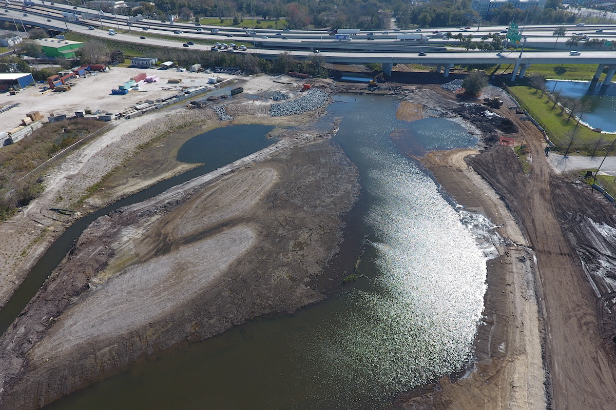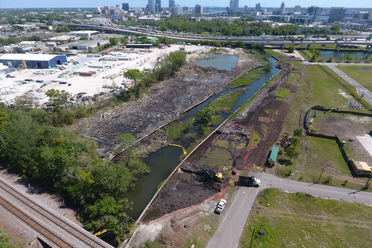 The downstream portion of the project also includes rerouting the original 44-foot-wide channel, which previously flowed underneath the city and even had a parking lot constructed on top of it that formerly served the Florida Times-Union.