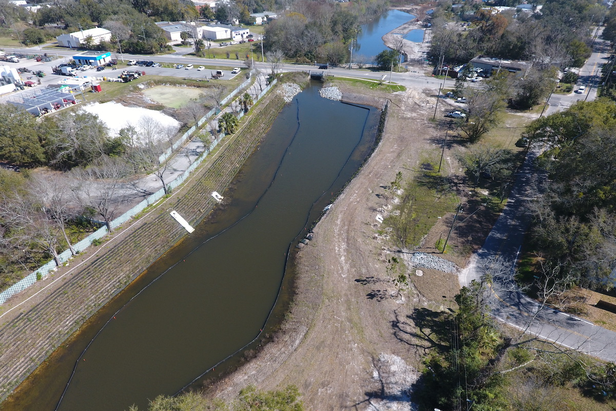 The project is broken into two funding phases. The first phase includes the upstream work, like the creek restoration and cul-de-sac construction, and the second phase accounts for the creek outlet into the St. Johns River. The team recently added a third phase further upstream to address future creek restoration and environmental remediation.