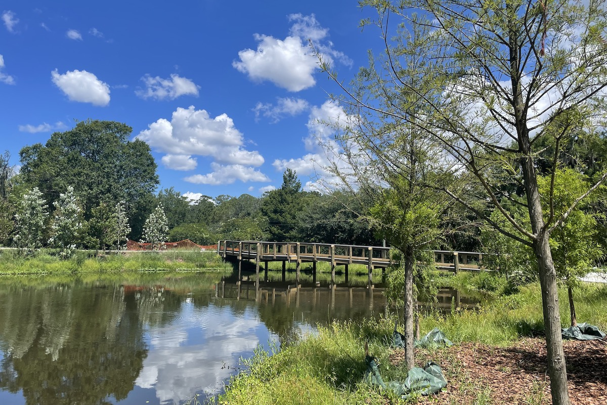 The project kicked off in 2019 by removing two defunct bridges. As a proof of concept to help get the community on board, the team then turned the retention pond at the intersection of Broward Street and McCoys Creek Boulevard into a park, with a small pavilion, native landscaping, and a boardwalk.