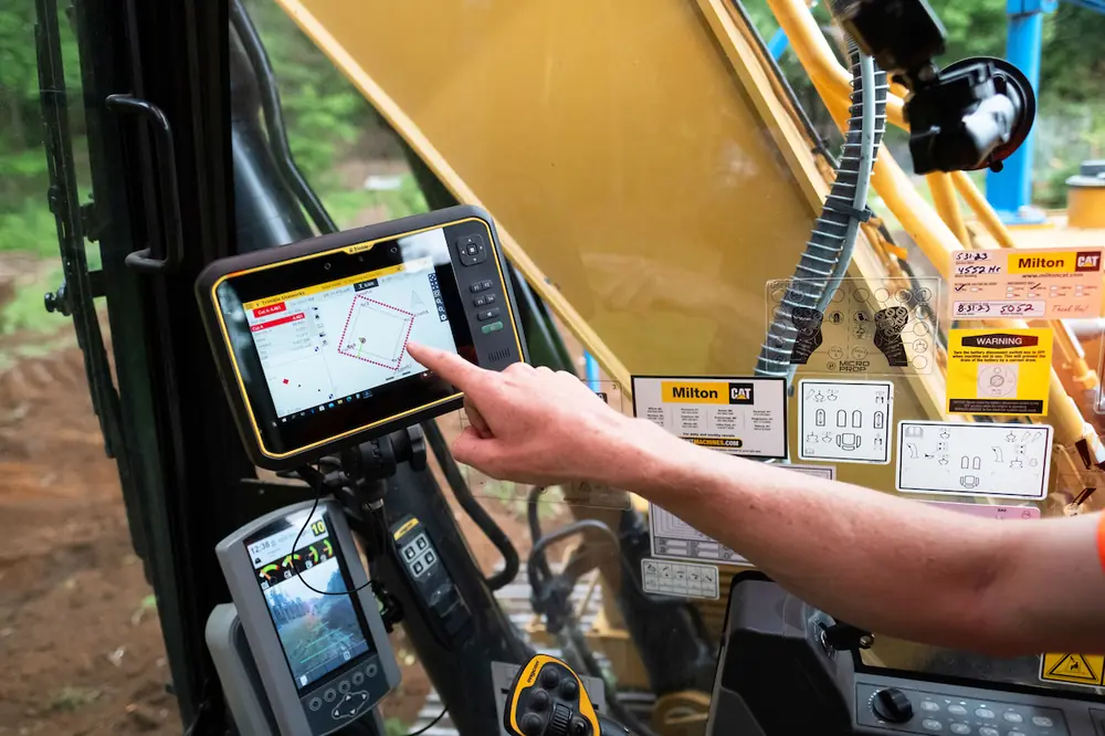 “Since the GNSS smart antenna is modular, I then screw it to the top of my excavator stick and move the data collector from the rover pole to a mount in the cab of my Cat[erpillar] 316 Excavator, and all of the data for the excavation is there,” he said. “Turn the system into machine mode, and I’m good to go for 3D earthwork.”