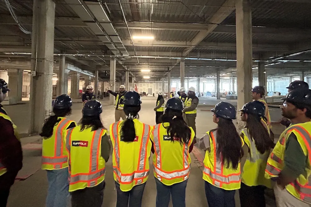 The students are in a course led by Mohamad Tassabehji, a Planning Analytics Manager at Suffolk who serves as a part-time lecturer at Northeastern University. Throughout the visit, the students were challenged to think critically about the daily responsibilities of project engineers, superintendents, and project managers. The experience provided an opportunity to connect classroom learning with real-world construction, offering an in-depth look at active project coordination and execution.