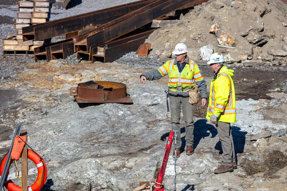 “We’re basically just using oxygen burning to achieve really high temperatures so we can cut through the steel of the existing structure,” said Dustin Littlefield, a Project Manager with Reed & Reed, which is headquartered in Woolwich, Maine.
