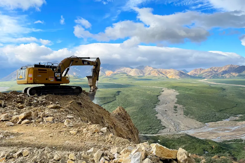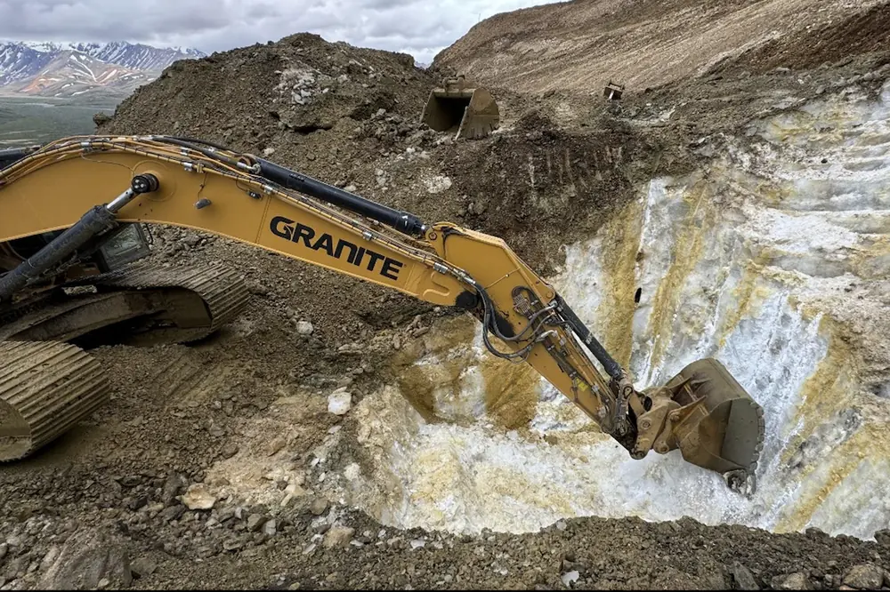 To break up and excavate the frozen colluvium, the team used a Caterpillar 349 Excavator equipped with a ripper attachment, as well as a Caterpillar 336, Caterpillar D6, and Caterpillar D8.
