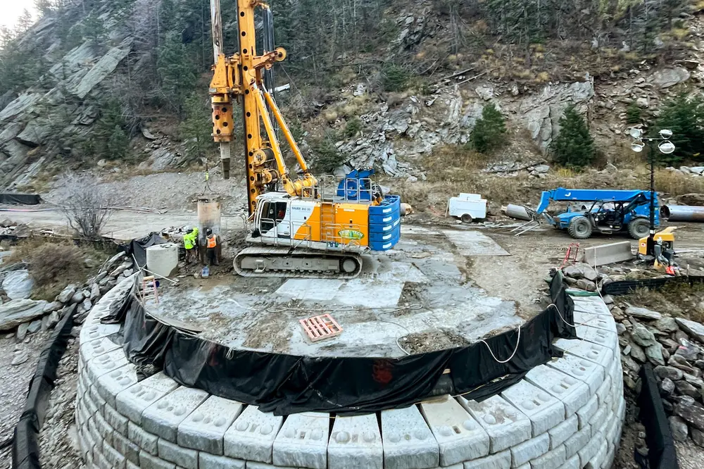 The project is constructing over 200 caissons. There have been no major issues so far other than some caissons needing to be lengthened or shortened depending on where the team found bedrock.