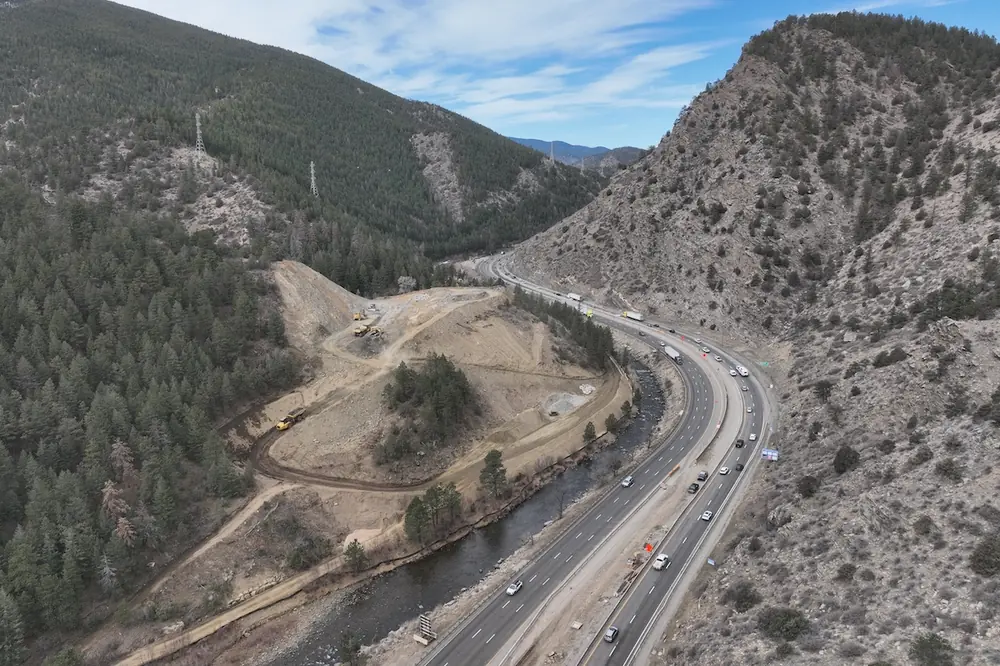 The work zone includes multiple constraints, including the surrounding mountains and Clear Creek, which is beneath I-70 for most of the project area. Another constraint is the active landslide in the area.