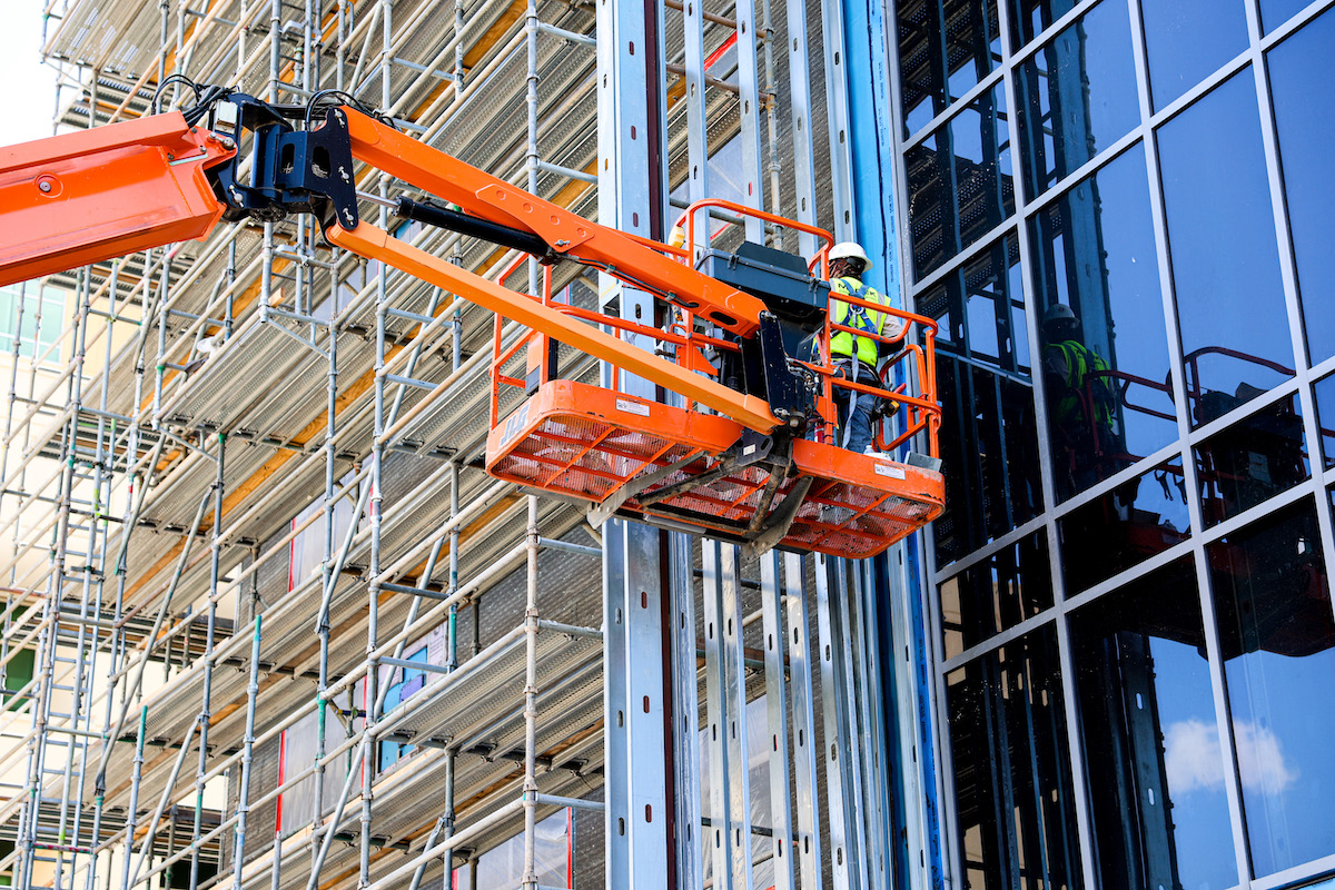 To facilitate working in the tight space, Joeris crews utilized a large, central tower crane — rather than multiple mobile cranes — for structural construction.