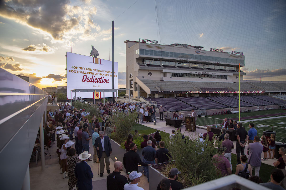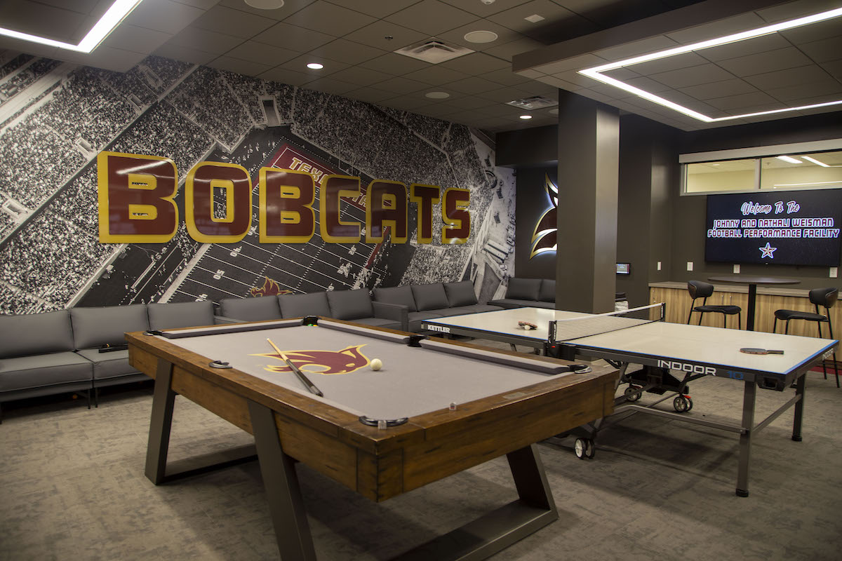 AUSTIN, TX — Texas State University in San Marcos, Texas, recently unveiled renovations and additions to the Bobcat Stadium End Zone Complex, now named the Johnny and Nathali Weisman Football Performance Center, an 85,000-square-foot expansion to enhance player development and the fan experience. Designed by Pfluger Architects and built by White Construction, the facility includes a new upper-level hospitality, banquet space, and exterior concourses, plus major upgrades to the field house, including an 8,000-square-foot weight room, 3,000-square-foot training room, and more.