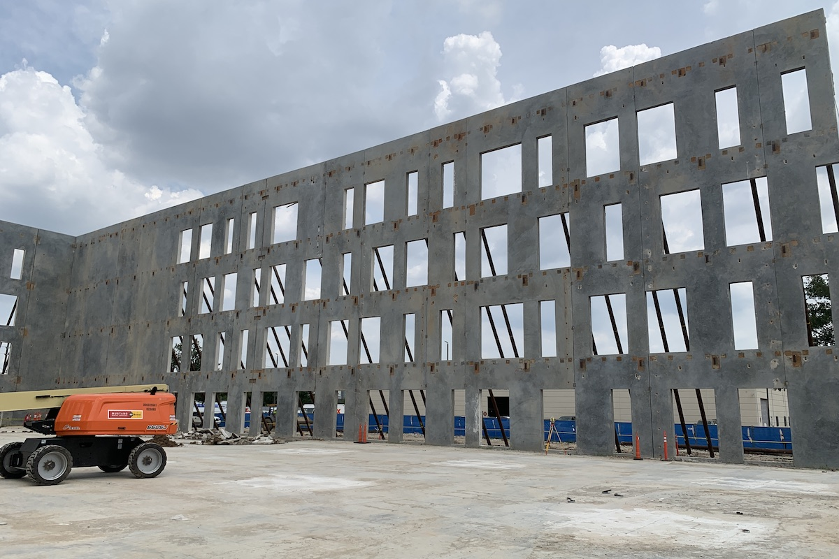 While the tilt-wall construction method has enabled the building to go up quickly, the process was not without its challenges — particularly given the build site’s relatively small, 7.5-acre footprint.