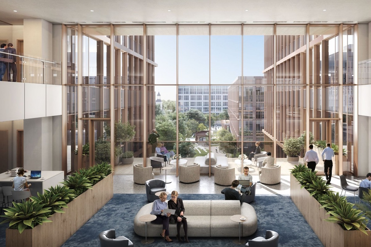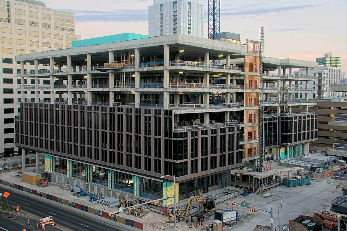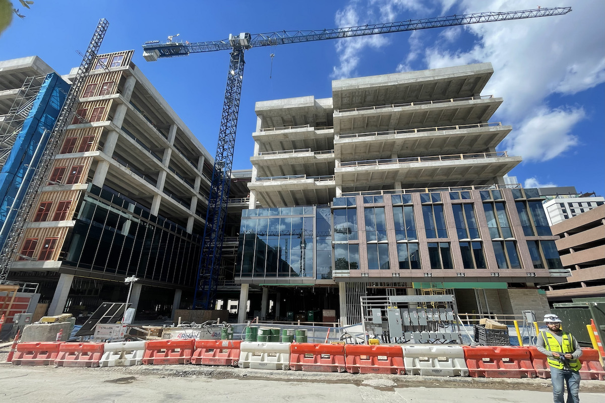 “The excavation was about a year-long process,” Emanuel said. “And then we built the underground parking structures. Work on the above-grade office structures followed, with those topping out in August of 2025. We’re now working on core and shell construction, exterior closure, and interior finishes, with a target completion of December 2026.”