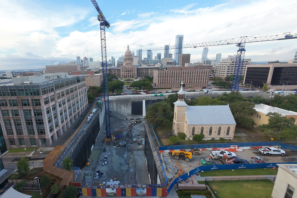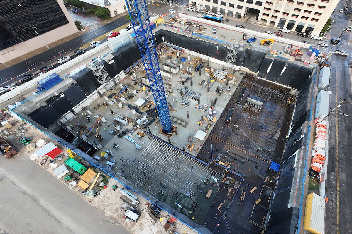 “It’s a pretty unique process that we do fairly often in downtown Austin, simply because of the geology there,” he added. “There’s a lot of hard limestone in the area, so we’re able to drill into the existing stone bed to create fairly extensive, supportive excavation systems.”