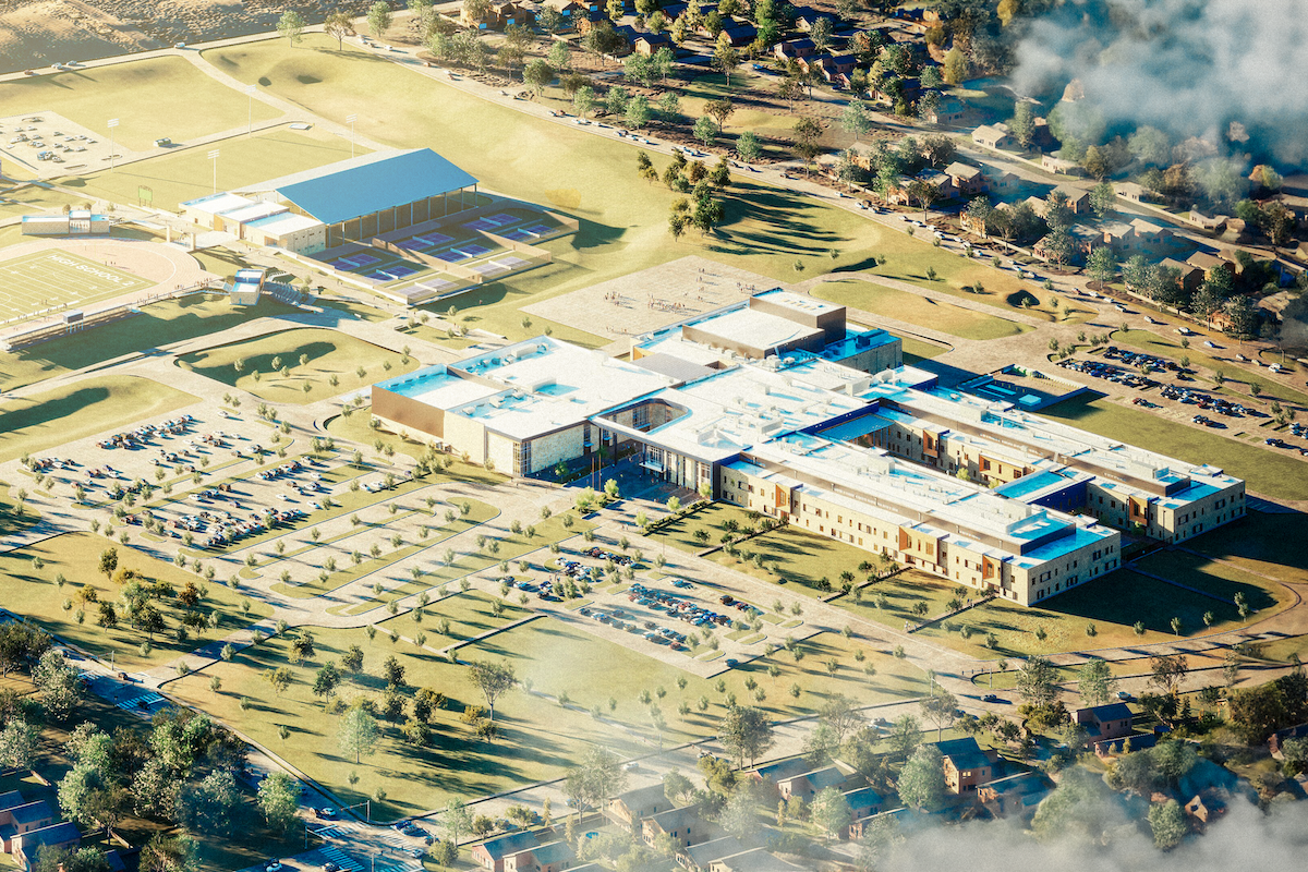 Designed by Pfluger Architects, the new school will feature a façade, experiential learning spaces, and outdoor learning environments. Situated in southeast Travis County, Del Valle ISD is adjacent to a growing tech and manufacturing industry along State Highway 130, spurring rapid population growth in the district. The new high school is being built by American Constructors on a 78-acre site in Whisper Valley, a $2 billion green master-planned community in East Austin that will eventually have 7,500 net-zero homes — the country's only affordable and sustainable community of this size.
