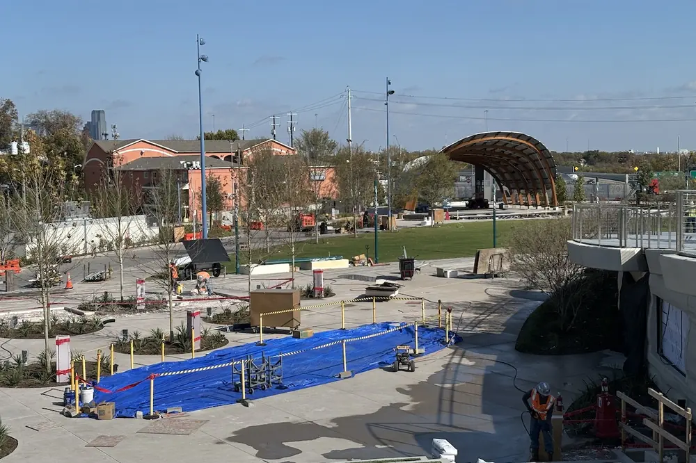 Private funding is paying for park amenities such as a large lawn, a multi-use building, a children’s playground, three fountains, and a bandshell. The total budget for phase one park construction and administration is $75 million.