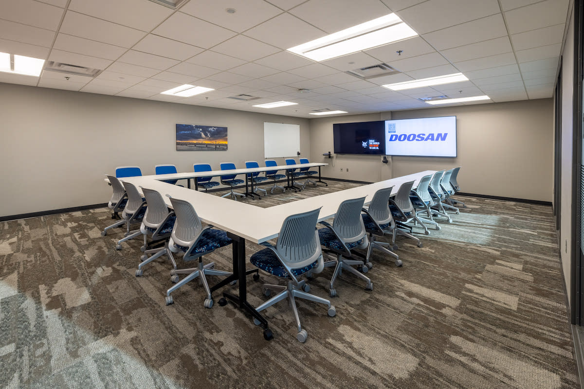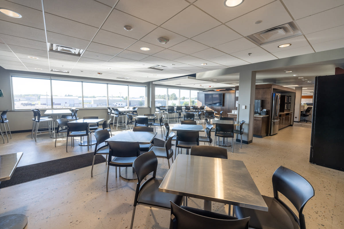 The project modernized 22,560 square feet of shared spaces across the facility, including employee breakrooms, meeting areas, conference rooms, and office spaces. With refreshed finishes, updated furnishings, and a collaborative layout, the improvements reflect Bobcat’s design standards across its global footprint.