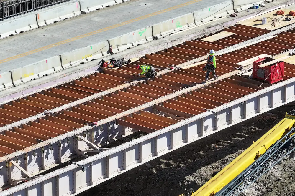 Once the widening was done, the team removed the deck all the way down to the steel beams and poured a new bridge deck onto the original bridge. However, they kept the same substructure and steel beams for the original bridge.