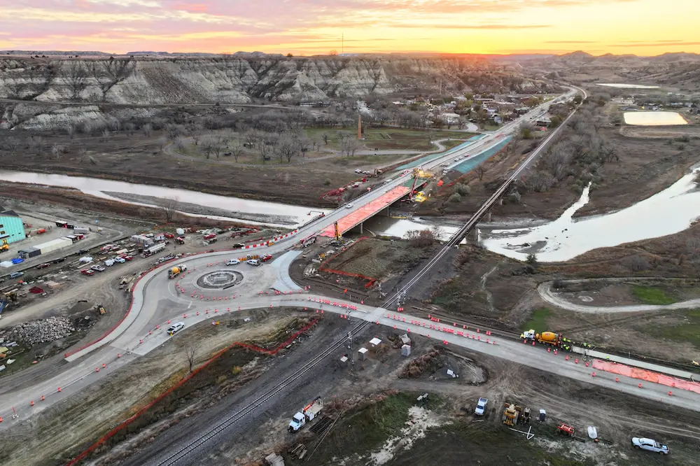 - Bridge widening: The 560-mile-long Little Missouri River runs through the area. Currently, the bridge is two lanes. The team is adding a third lane for left-hand turns and a 10-foot shared-use path on both sides. Previously, there was a path on one side. NDDOT added the path on the other side due to high pedestrian traffic. The second path will keep people from having to cross the road.