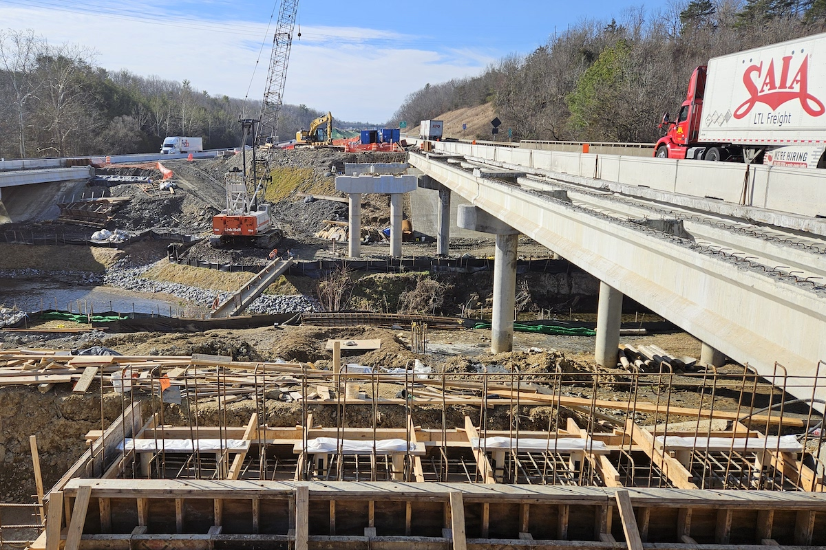 Bridge widening has proceeded on course. Duquette said that initially, Kokosing planned to perform the bridge work consecutively but then decided to work all bridges concurrently, a change that put the overall project ahead of schedule. The bridge work is phased construction with closure pours. Lane/roadway widening is toward the median.