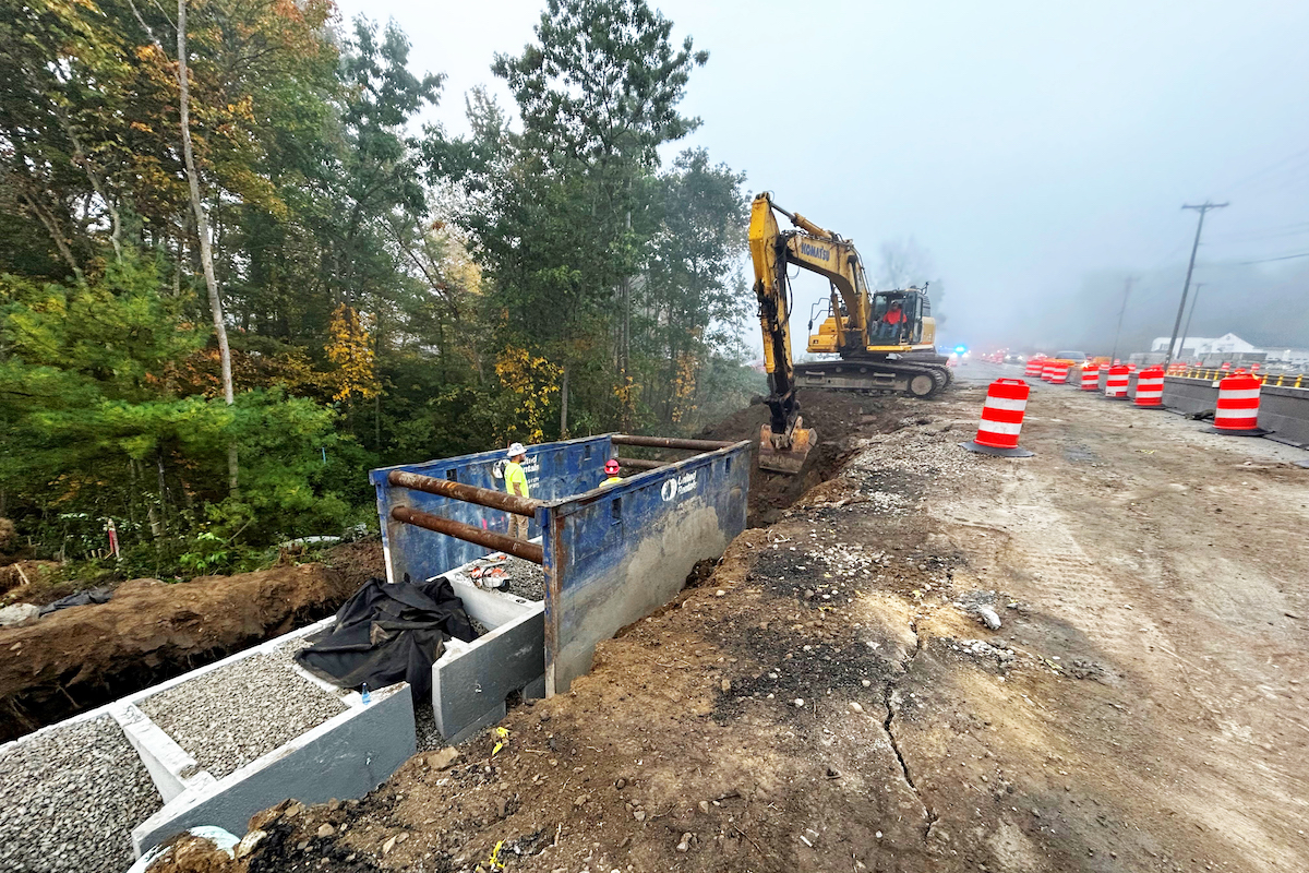 The project also included a $2.8 million MassWorks Infrastructure Program grant, awarded in December 2021. The MassWorks award supported the extension of the existing sewer main along Route 20. The sewer work was completed as non-participating work and as part of the contract.